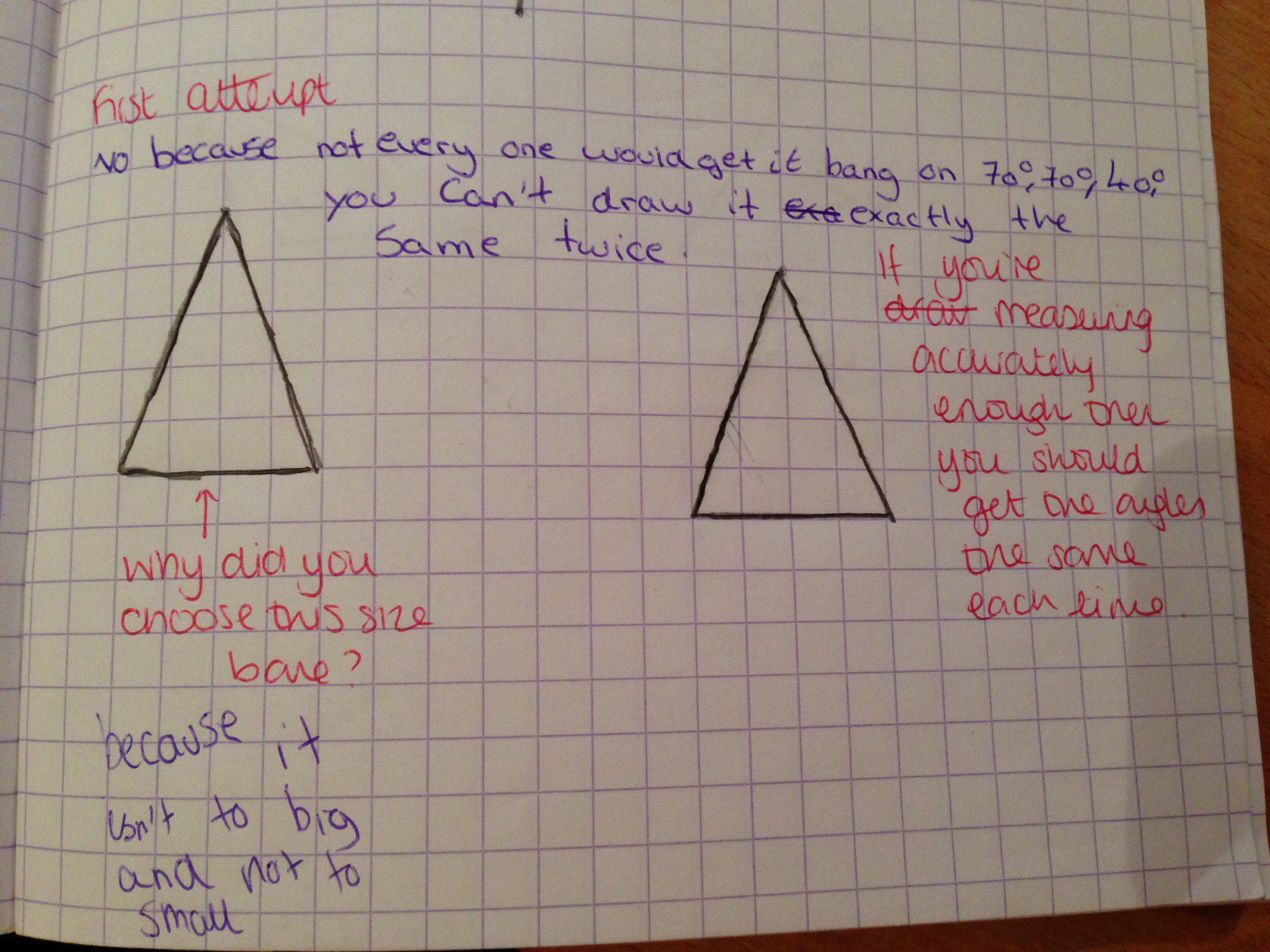 The next idea was a game changer for Andy, and I love it! I wouldn’t even call it a procedure, but more making Pythagoras’ Theorem a bit more concrete, rather than the abstract algebra workings. I (and I’m sure many do) introduce Pythagoras looking at the square of the sides of the right angled triangle. Well why not draw squares next to each side and put the square value in?
